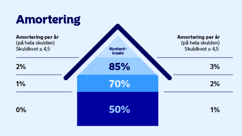 Brf Prisma Hyllie snart fem år – möjlighet att titta över ditt lån Nu har det snart gått fem år sedan de första medlemmarna flyttade in och blev medlemmar i Brf Prisma Hyllie, vilket innebär att ni har möjlighet att omförhandla din amortering. Amorteringen baseras på det amorteringsgrundande värdetNär du tar ett bolån sätts ett värde på din bostad, ett så kallat amorteringsgrundande värde. Det värdet ligger sedan till grund för din amortering i fem år. Om du omvärderar din bostad, fem år efter du tagit ditt bolån, får den ett nytt amorteringsgrundande värde. Hur mycket måste man amortera enligt amorteringskravet?Amorteringskravet bestämmer hur mycket du ska amortera när du tar ett nytt bolån. Amorteringskravet gäller alla bolån tagna efter 1 juni 2016, som har en belåningsgrad på över 50 %.Hur stort amorteringsbeloppet blir bestäms av bolånets storlek i förhållande till bostadens värde (belåningsgrad) samt hushållets inkomst. Det här säger amorteringskravet:# Bolån över 70 % av bostadens värde ska amorteras med minst 2 % per år.# Bolån på 50–70 % av bostadens värde ska amorteras med minst 1 % per år.# Om du lånar mer än 4,5 gånger hushållets totala bruttoårsinkomst (skuldkvot) ska man amortera ytterligare 1 procentenhet. Det gäller även om belåningsgraden är under 50 %. Om bostadens värde höjs sänks din belåningsgradOm värdet på bostaden är högre än när den värderades sist, har du chans att sänka din amortering. Det beror på att din belåningsgrad – alltså hur stort lån du har i förhållande till bostadens värde – blir lägre.Din amortering är delvis baserad på din belåningsgrad. Om den sänks, finns det därför en chans att du inte behöver betala av lika mycket på lånet varje månad. Kontakta din bank för att se vad som gäller för dig!