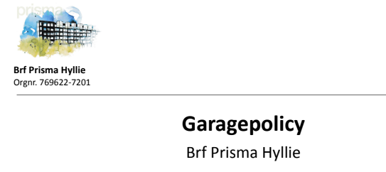 Parkeringsmöjligheter i vår fastighet I källaren under vår fastighet finns ett garage med infart från Sivs gränd. I garaget finns 38 st bilplatser varav 15 st utrustade med laddare för elbilar (fr.o.m mars 2024). Det finns även 5 st platser för MC. Föreningen administrerar själva kölistan för p-plats i garaget. Vänligen kontakta oss på vid intresse för en p-plats eller för information om vilken plats ni har på kölistan. Se till att garageporten går ner vid ut och inpassage, vi vill inte att obehöriga ska komma ner i vårt garage. För att få veta fullständiga regler, läs vår garagepolicy via länk här: Brf Prisma Hyllie Garagepolicy (pdf dokument) All otillåten parkering i vårt garage eller på vår bilpoolsplats kommer bötfällas och kan rapporteras av boende till parkeringsövervakaren som föreningen har avtal med. Läs mer om detta här: https://www.brfprismahyllie.se/kontakt/parkering Inom Hyllie råder parkeringsförbud längs med samtliga gator där det inte står skyltat parkering. Föreningen har tyvärr ingen parkeringsplats för besökare. För kortare parkering (1 tim) finns ett fåtal platser längs Ymers gata. I övrigt hänvisar vi till närmaste parkeringshus (P-huset Hyllie Allé). Boendeparkering (i Parkering Malmös parkeringshus P-huset Hyllie och P-huset Hyllie Allé ) För att uppfylla parkeringsnormen har föreningens byggherre valt att köpa 30 stycken så kallade boendeparkeringsplatser i Parkering Malmös P-hus Hyllie (18 st) resp. Hyllie Allé (12 st). Föreningen har avtal med Parkering Malmö för dessa boendeparkeringsplatser som innebär att vi får parkera till ett reducerat pris. Parkering Malmö har inte möjlighet att administrera en gemensam kö till bägge P-husen utan man får ställa sig i kö till båda om man inte har någon plats. Har man en plats i P-huset Hyllie och önskar en plats i P-huset Hyllie Allé kontaktar man P-Malmö och ställer sig i kö där. Om man har en parkeringsplats i föreningens garage kan man inte samtidigt utnyttja boendeparkeringsförmånen via vårt avtal med Parkering Malmö. Principen är att varje lägenhet kan hyra en parkeringsplats antingen i föreningens garage eller via boendeparkeringsavtalet hos Parkering Malmö (i mån av plats). Mer om Parkering Malmö hittar du här: https://www.pmalmo.se/Parkera/vara-parkeringsanlaggningar/p-huset-hyllie-alle/ Bilpool På Sivs gränd har föreningen en parkeringsplats som är i nuläget är reserverad för bilpool med Kinto Share. Läs mer här: https://www.brfprismahyllie.se/tjanster/bilpool