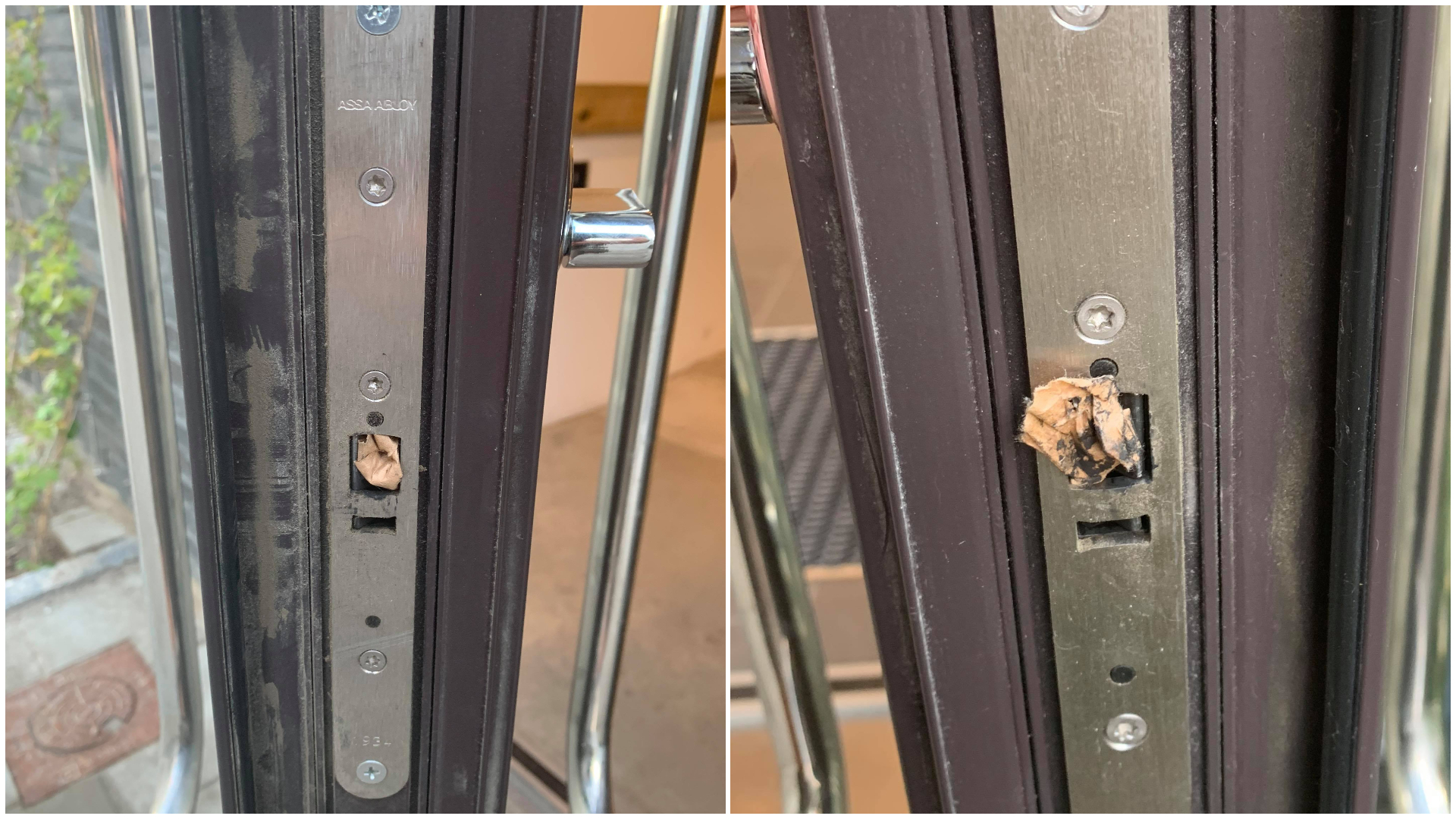 Skräp hindrar dörrarna att låsas Styrelsen har uppmärksammat att någon stoppat in skräp i låshuset på flera dörrar för att hålla dörren i olåst läge. Under bara några dagar är det minst fyra ytterdörrar som manipulerats. Vi hoppas och tror att det inte är någon av våra medlemmar som gjort detta. Därför vill vi att ni är extra uppmärksamma på vem som rör sig runt vår fastighet och inte släppa in någon obehörig. Kontrollera att dörrarna låser och att ingen smiter in eller placerar något i låset. Ser ni att något är instoppat så skicka mail till styrelsen och plocka ut skräpet om möjligt. Fungerar inte en dörr som väntat ska en felanmälan skickas direkt till vår tekniska förvaltare Sydentreprenad för att kunna åtgärdas så snart som möjligt. Tyvärr kan det ta lite tid då vi fortfarande har garanti och det måste gå en lång väg innan tekniker kan skickas ut för åtgärd. // Styrelsen
